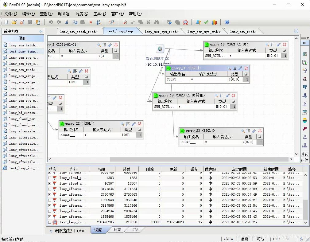 按照以上方式,创建多个ETL作业,其中每个ETL作业对应一张同步表。