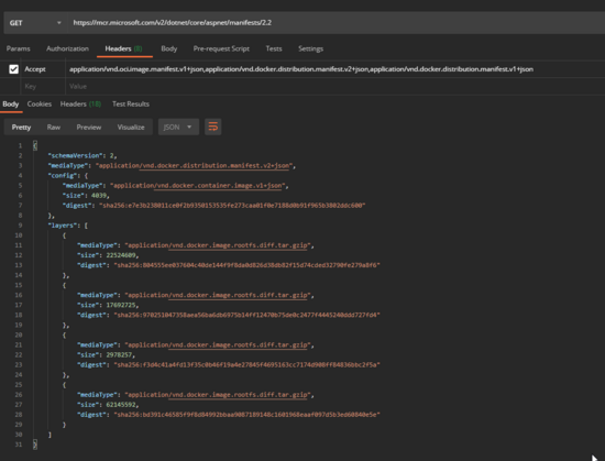 https://mcr.microsoft.com/v2/dotnet/core/aspnet/manifests/2.2 Accept: application/vnd.oci.image.manifest.v1+json,application/vnd.docker.distribution.manifest.v2+json,application/vnd.docker.distribution.manifest.v1+json