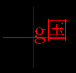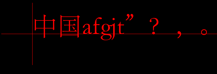 (4)(5)$x,$y 被绘制字符串的第一个字符的基线点。单位是像素。这里涉及到字体设计的基本知识--基线。这个点绝对不是左上角,而具体是什么取决于所使用的字体是如何设计的。对于宋体、楷体、黑体等常见的字体中的汉字,这个点大概位于字体的左下部分;而对于英文字母和标点符号,则各不相同。如下图: