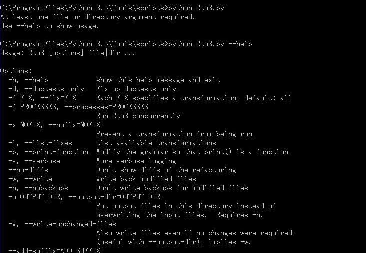 C:\Program Files\Python 3.5\Tools\scripts>python 2to3.py