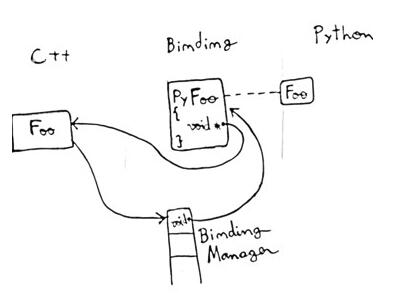 Python中的代码通过CPython等将语句解释为C/C++语言,然后编译器调用binding入口函数,将传进来的PyObject*参数通过PyFloat_AsDouble()等转换成C/C++变量。