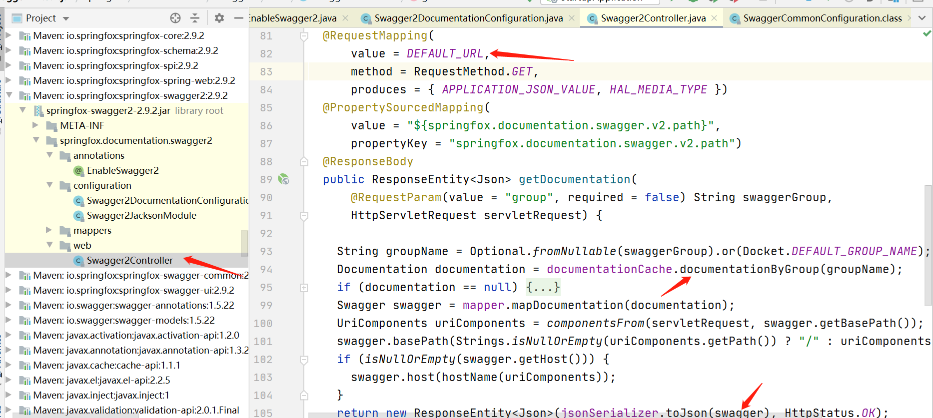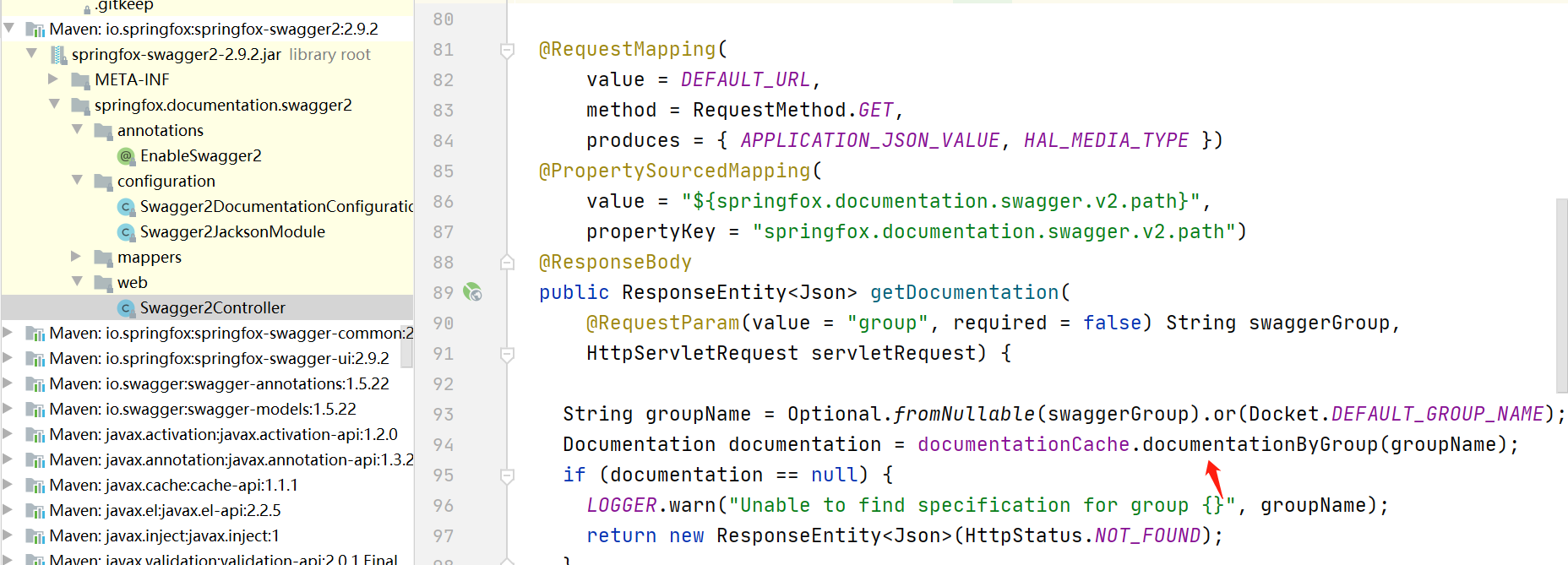然后再回到swagger接口的类那里,实际上就是从这个DocumentationCache里获取到Documention
