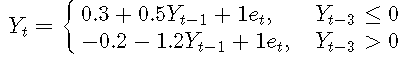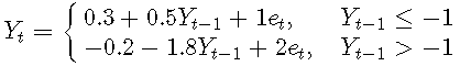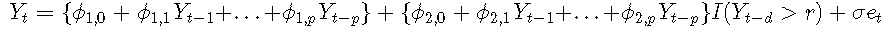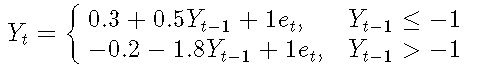 σ是噪声标准偏差,Yt-1是阈值变量,r是阈值参数, {et}是具有零均值和单位方差的iid随机变量序列。