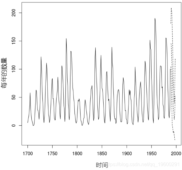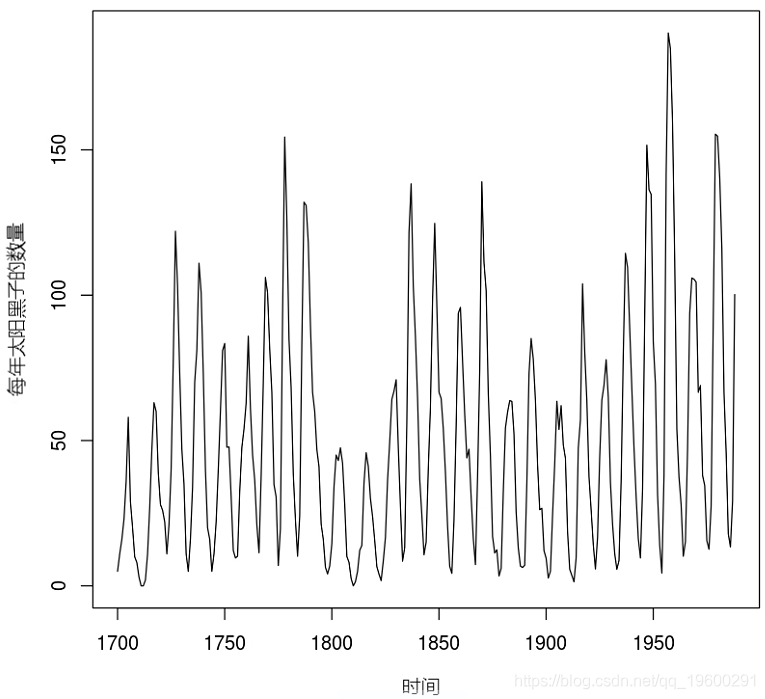 这里模拟的时间序列是1700年至1988年太阳黑子的年数量。