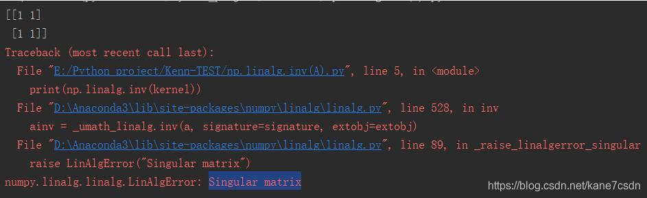 注意,Singular matrix奇异矩阵不可求逆