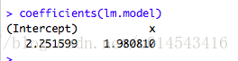 Intercept是指的截距,x对应的便是系数,对于一元线性回归方程y=ax+b来说,2.251599便是b的值,1.980810便是a的值。