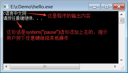 对上面的代码稍作修改,让程序输出“C语言中文网”后暂停下来: