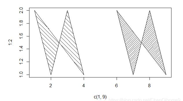 polygon(1:9, c(2,1,2,1,NA,2,1,2,1),
