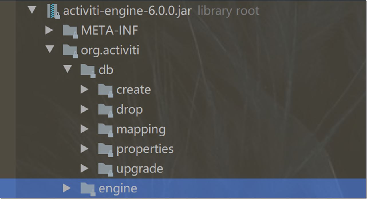 根据这个路径,我们去Activiti源码里查看,可以看到在org/activiti/db/路径底下,总共有5个文件目录。根据其名字,可以猜测出,create目录下存放的,是生成表的sql语句;drop目录下,存放的是删除表是sql语句;mapping目录下,是mybatis映射xml文件;properties是各类数据库类型在分页情况下的特殊处理;upgrade目录下,则是更新数据库表的sql语句。