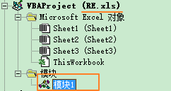 1、新建一个EXCEL文件,我这里命名为RE,随后按ALT+F11打开宏编辑器,选中任意一个sheet,右键,选择插入模块:
