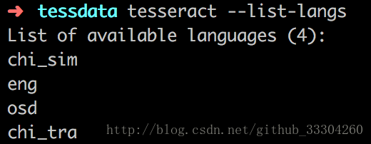 这是因为tesseract默认只有语言包中没有中文包,如下图: