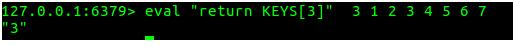 eval "return KEYS[3]" 3 1 2 3 4 5 6 7将返回第3个参数,即3