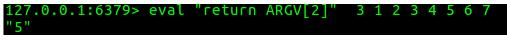 eval "return ARGV[2]" 3 1 2 3 4 5 6 7将返回第二个值,即5