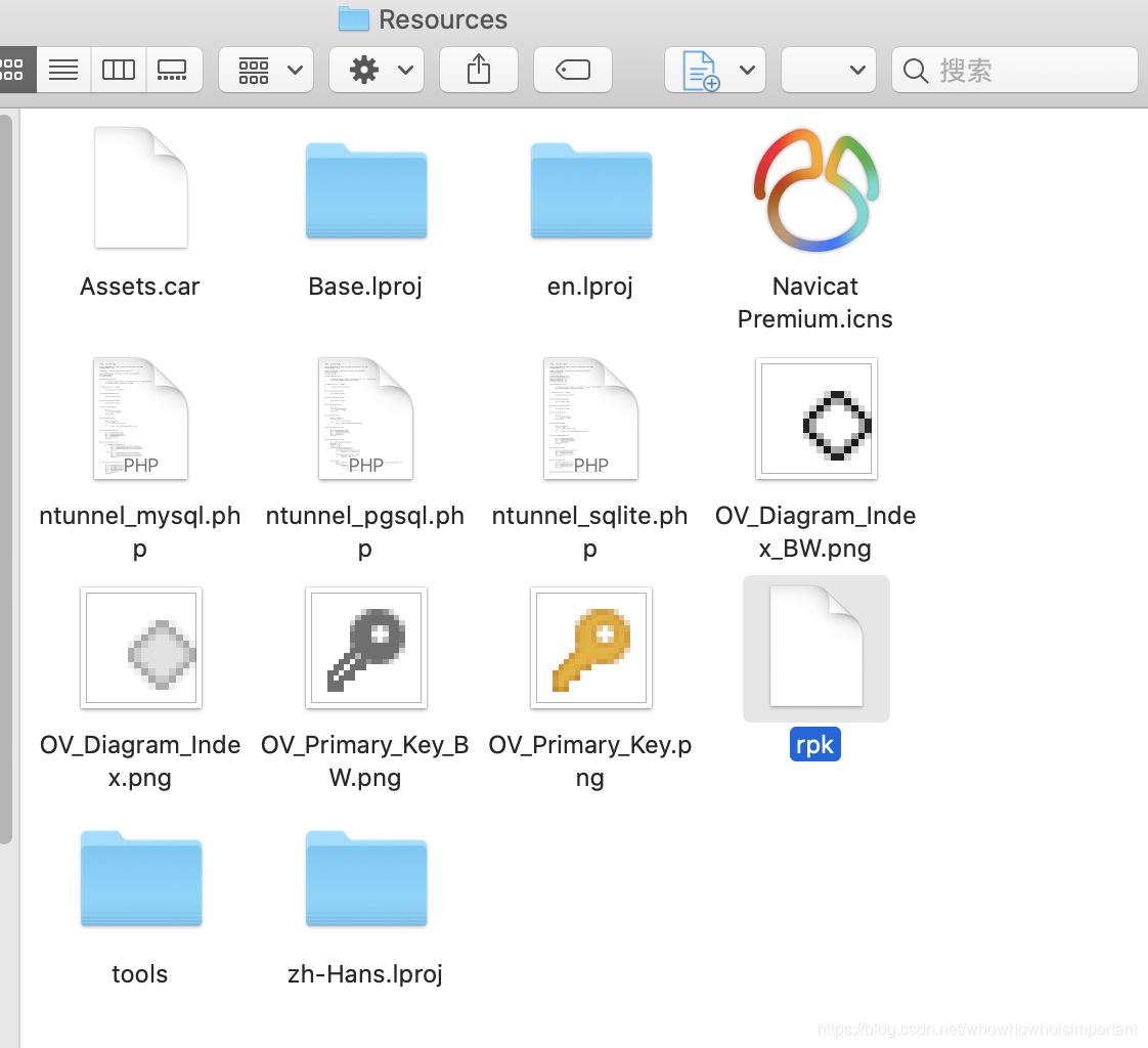 3、打开访达->应用程序中,右键navicat ,点击显示包内容,打开目录 /Contents/Resources
