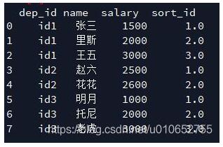 pandas dataframe 对dep_id组内的salary排序。希望给下面原本只有前三列的dataframe,添加上第四列。