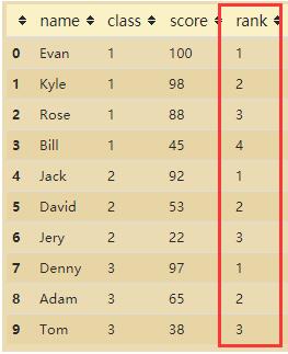 补充:Pandas.DataFrame实现分组、排序并且为分组插入排名