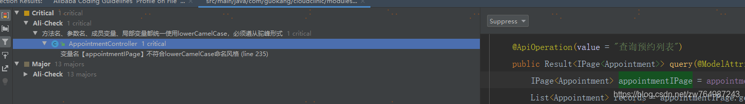 将会出现如下所示的检查结果,并会给出编码规范和提示: