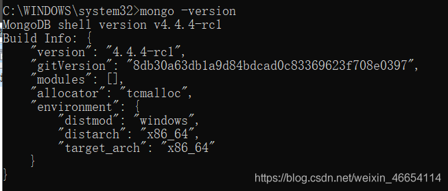 输入命令就可以查看mongoDB的版本了