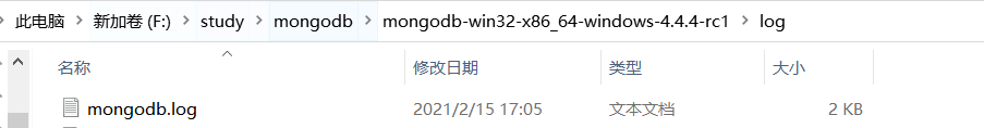 mongod --config F:\study\mongodb\mongodb-win32-x86_64-windows-4.4.4-rc1\mongo.config --install --serviceName "MongoDB" --journal
