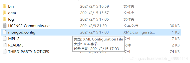 - 在MongoDB解压目录(bin文件同级目录下)创建 data文件夹和log文件夹