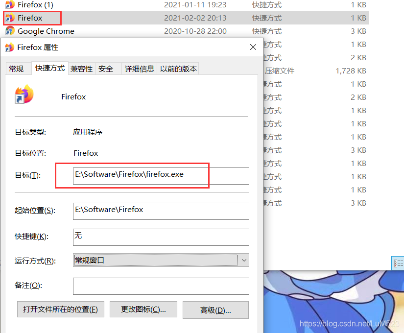 这段代码中的程序所在位置,根据你自己的程序所在位置写,不要直接复制我的。如果自己不知道浏览器安装在里面,可以在桌面找到图标,右键,属性: