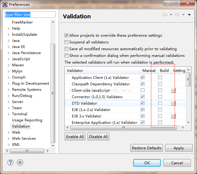 到此这篇关于详解Eclipse Validating缓慢的优化的文章就介绍到这了,更多相关Eclipse Validating缓慢优化内容请搜索自学编程网以前的文章或继续浏览下面的相关文章希望大家以后多多支持自学编程网!