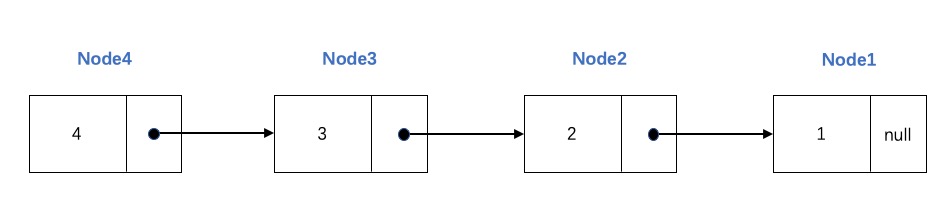 我们以一条 N1 -> N2 -> N3 -> N4 指向的单链表为例: