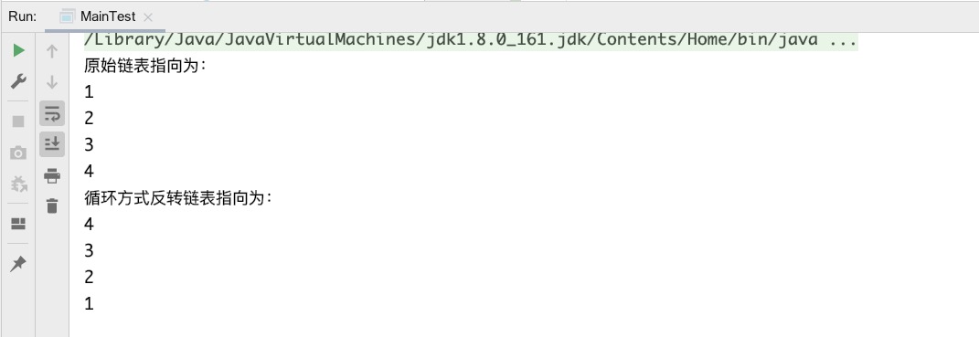 可以看到,原先指向为 N1 -> N2 -> N3 -> N4 的链表,运行反转方法后,其指向已变为 N4 -> N3 -> N2 -> N1