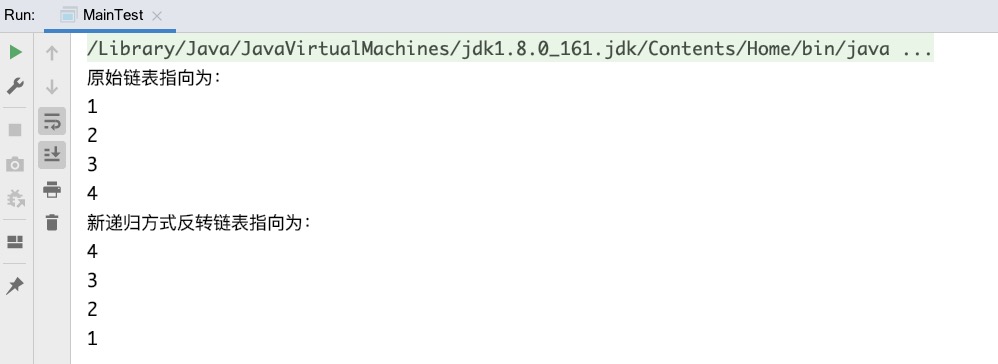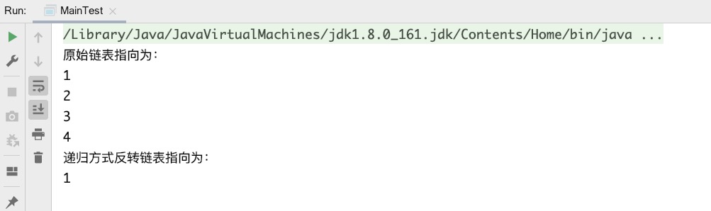 注意:在上面👆的测试代码中,在调用递归函数时传递了Node类的实例head作为参数