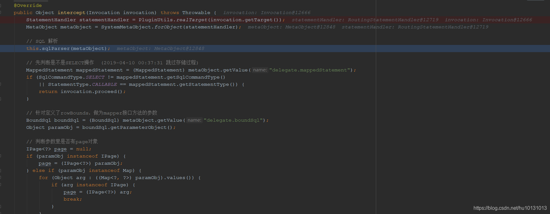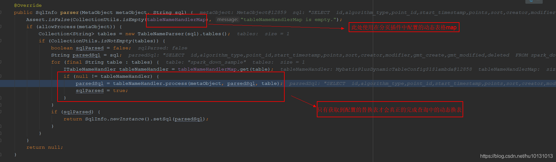 MP中是通过PaginationInterceptor(分页插件)完成动态表名解析的,配置如下: