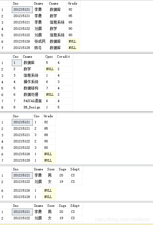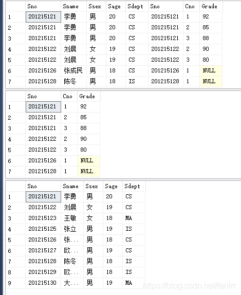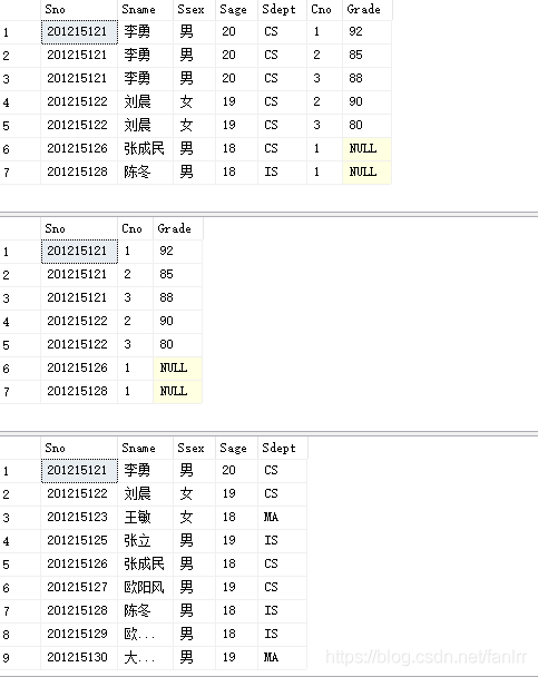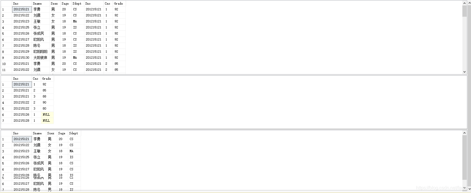 SELECT Student.Sno,Sname,Ssex,Sage,Sdept,Cno,Grade