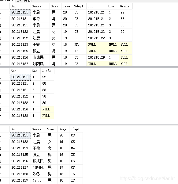 例如某个学生没有选课,仍把Student的悬浮元组保存在结果关系中,而在SC表的属性上填上空值NULL,这是需要使用外连接