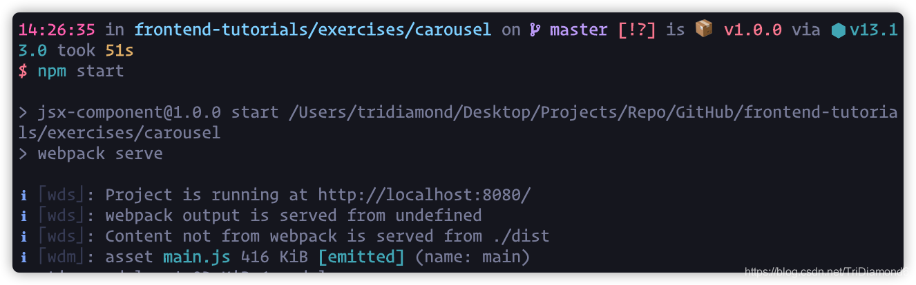 这里我们就可以正式开始开发组件了,但是如果每次都需要手动 webpack 打包一下,就特别的麻烦。所以为了让我们可以更方便的调试代码,这里我们就一起来安装一下 webpack dev server 来解决这个问题。