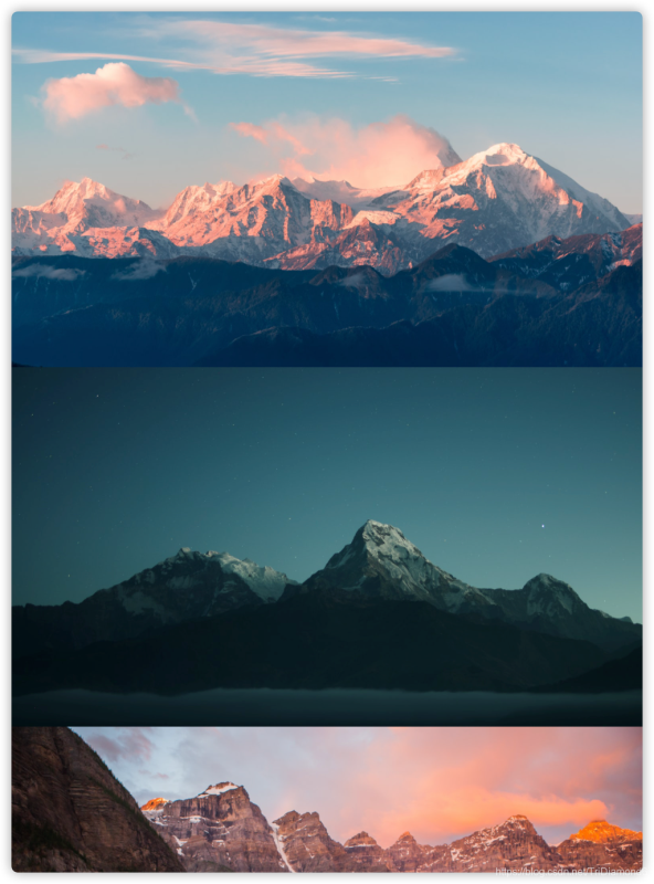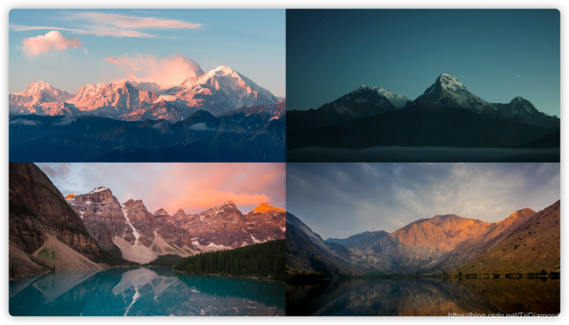 因为是轮播图,那我们当然需要用到图片,所以这里我准备了 4 张来源于 Unsplash 的开源图片,当然大家也可以换成自己的图片。首先我们把这 4 张图片都放入一个 gallery 的变量当中: