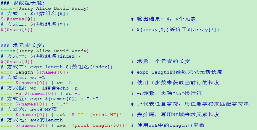 2) 同样道理${#array_name[@]} 或者 ${#array_name[*]}都可以用来求数组的长度