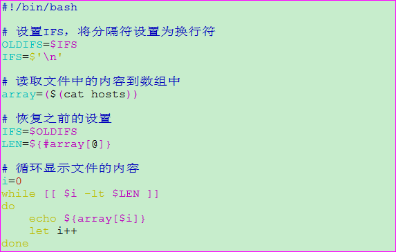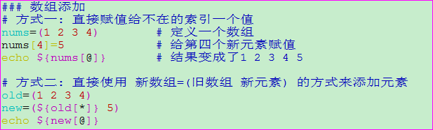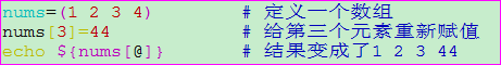 2) 切片后返回的是字符串,可以通过 新数组=(${旧数组[@]:索引:长度})来索引,参见上面最后一个例子