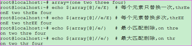${array[@]/x/y} 最小匹配替换,每个元素只替换一次