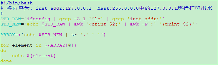 示例一: 将ifconfig命令取到的本地IP: 127.0.0.1逐行显示出来