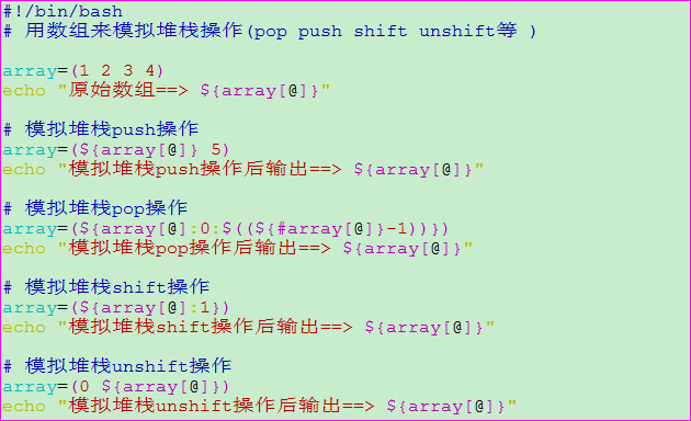 Shell中数据类型不多,比如说字符串,数字类型,数组。数组是其中比较重要的一种,其重要应用场景,可以求数组长度,元素长度,遍历其元素,元素切片,替换,删除等操作,使用非常方便。