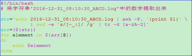 3)字符串是SHELL中最重要的数据类型,其也可通过($str)来转成数组,操作起来非常方便;