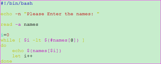 示例五: 用read -a参数,从标准输入中读取数组,再做操作