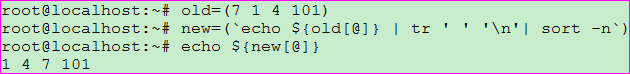 [root@locathost ~]# a=(`echo $s | tr ',' ' '`) # 将字符串转变成数组