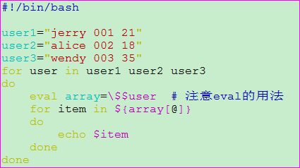 5) 区别于Python之三:Python可以通过 list[-1:-4:-2]来反向取数,在Shell则实现不了