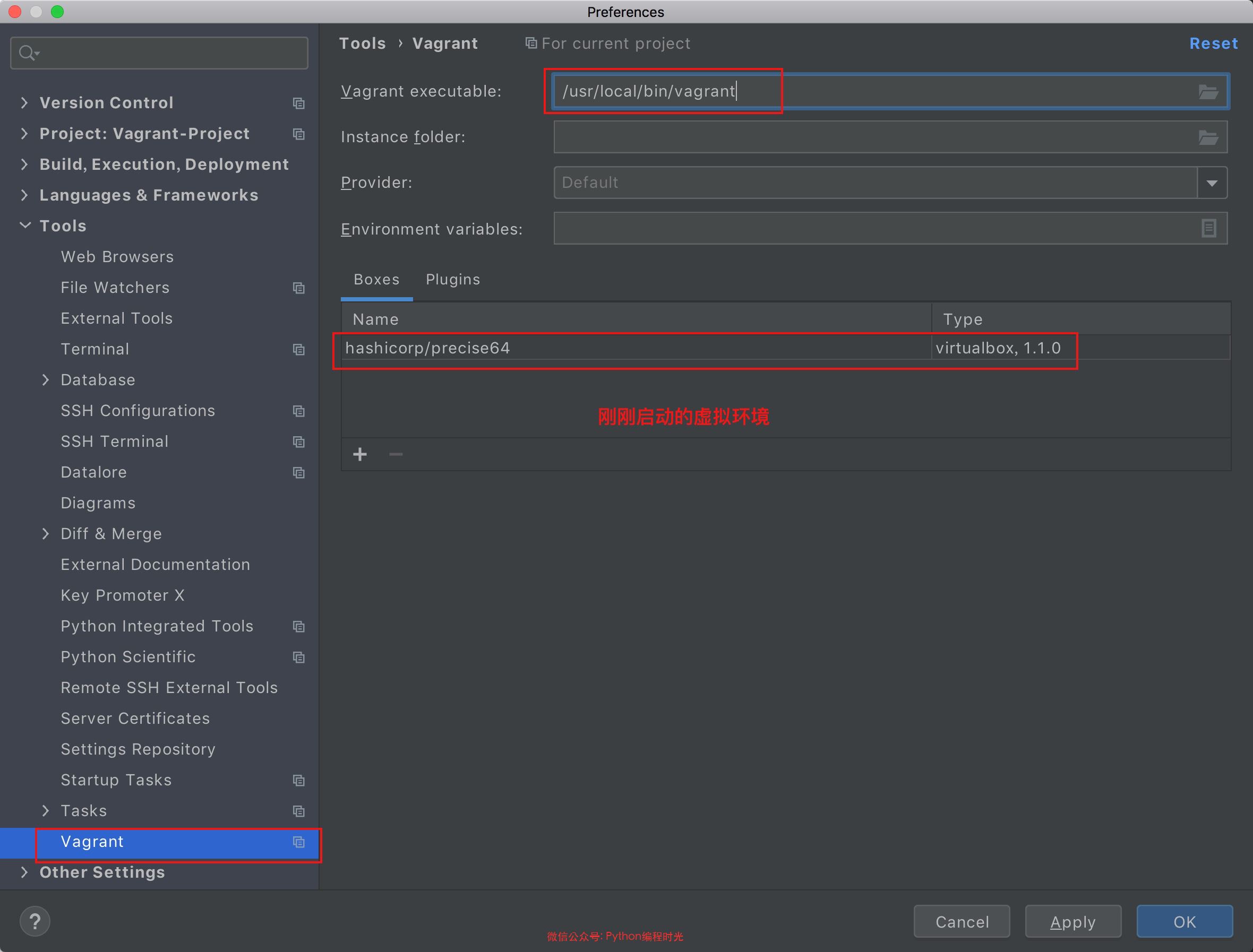 PyCharm 不愧是最专业的 Python IDE ,它对 Vagrant 也提供了非常好的支持。不过在使用前,需要配置一下。