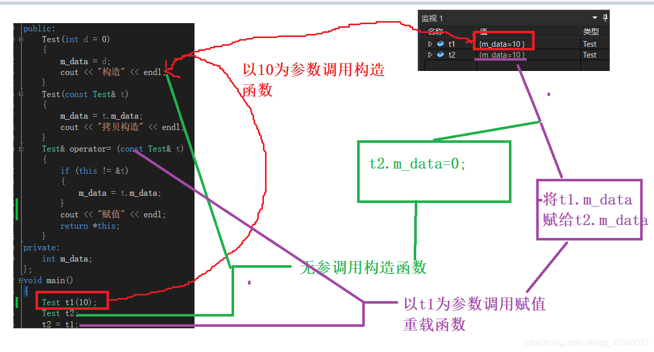 1.拷贝构造函数是构造函数的一个重载形式;