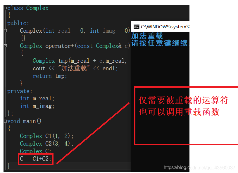 2.C1调用加法重载函数进行C1+C2;