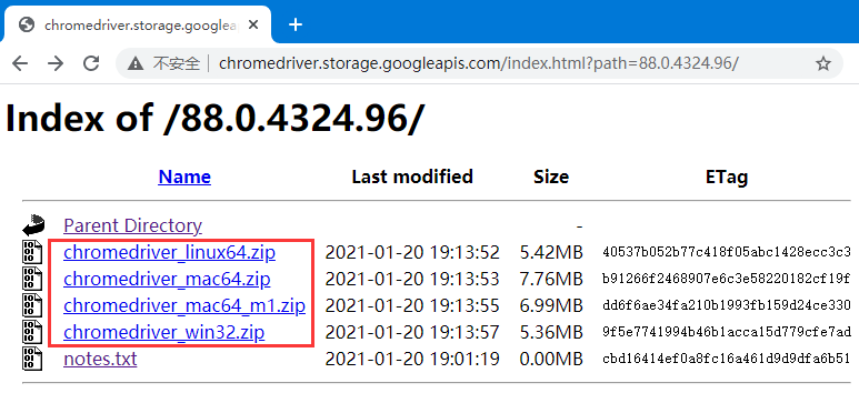 官方下载地址:http://chromedriver.storage.googleapis.com/index.html