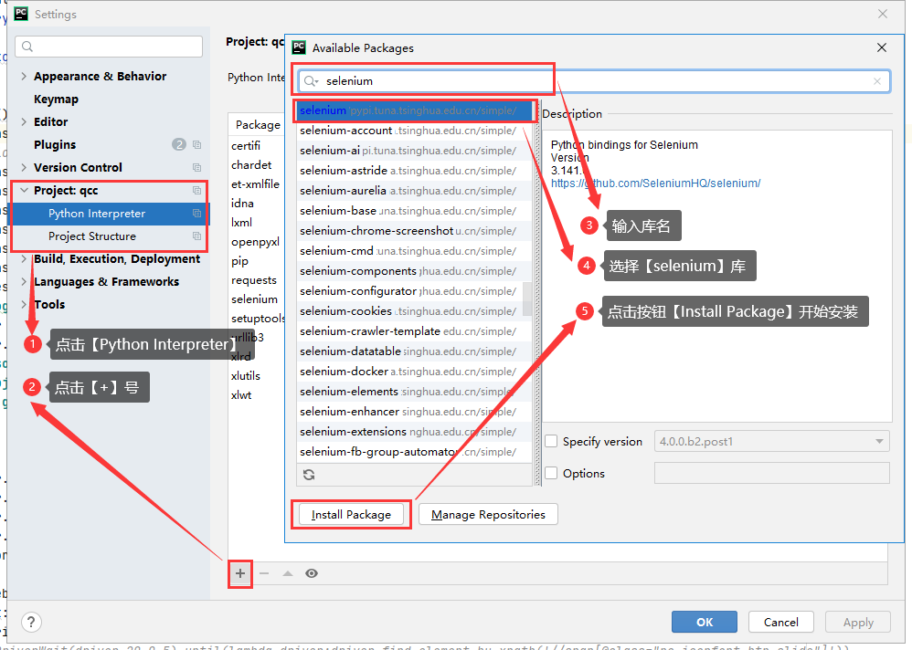 Pycharm开发工具安装selenium库