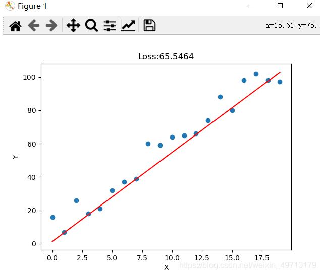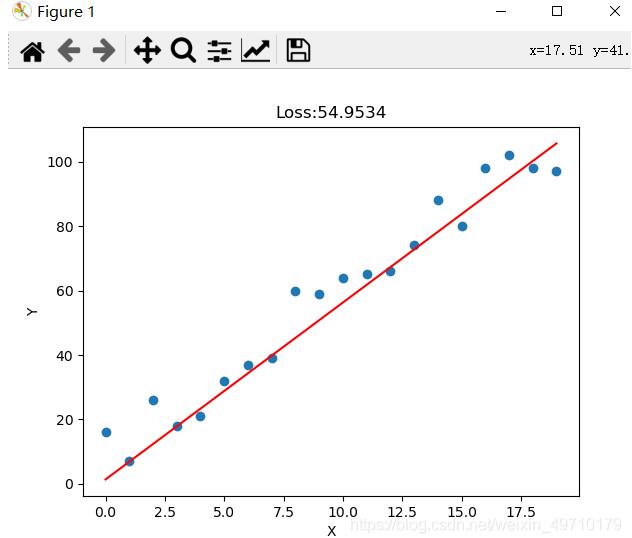 y = np.array([5*x[i] + random.randint(1,20) for i in range(len(x))])    # random.randint(参数1,参数2)函数返回参数1和参数2之间的任意整数