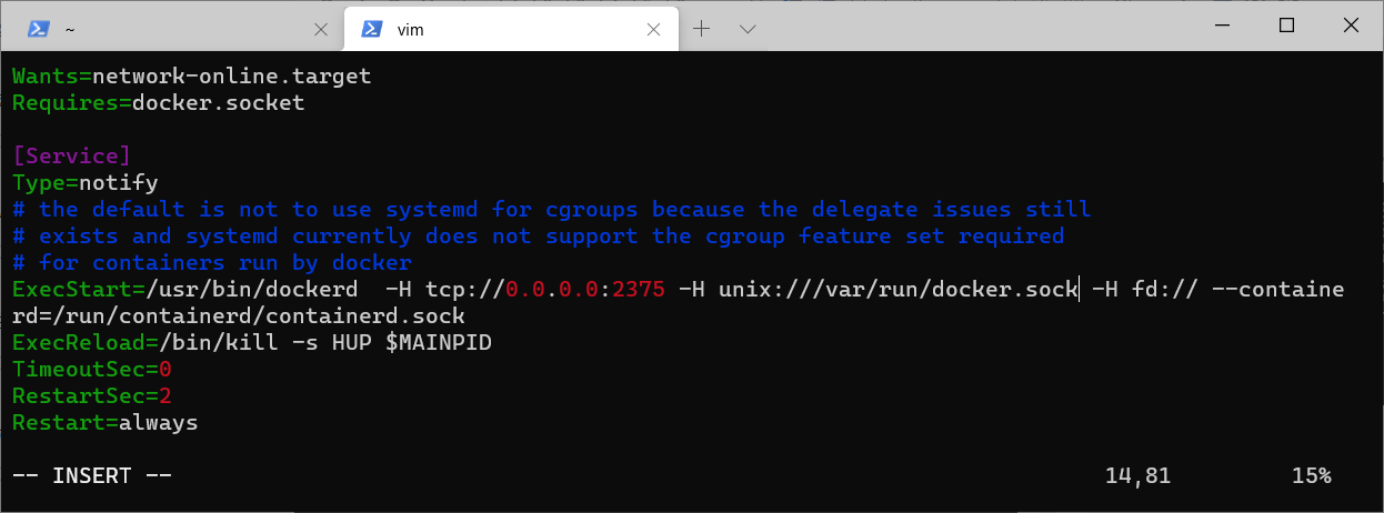 -H tcp://0.0.0.0:2375 -H unix:///var/run/docker.sock